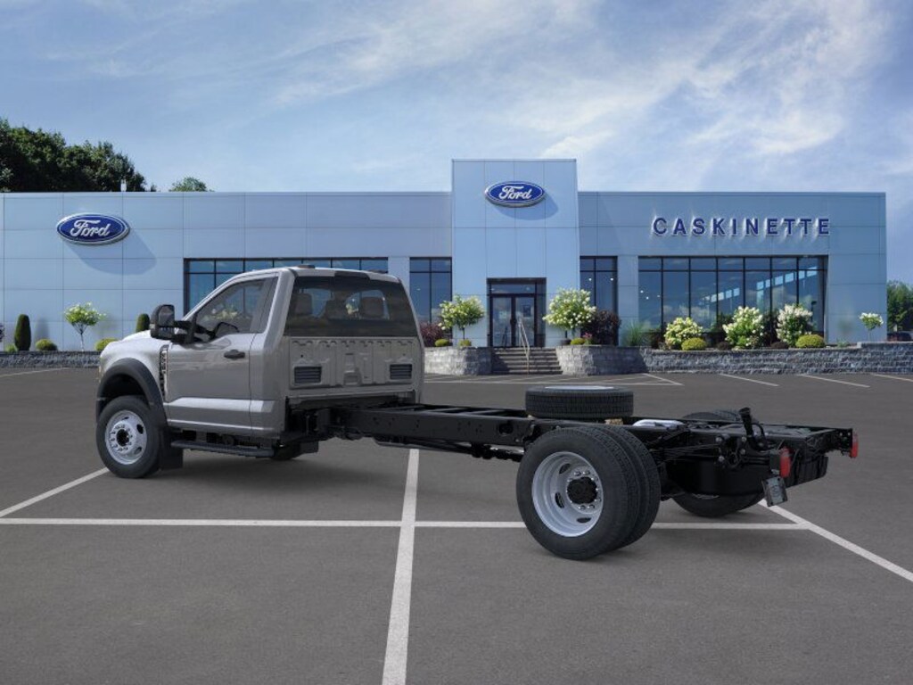 Ford Connectivity Package (1-Year Included), GVWR: 18,000 lbs Payload Package, Internet access capable: 5G Modem - Ford Connectivity Package, 4 Speakers, 4-Wheel Disc Brakes, 4.88 Axle Ratio, ABS brakes, Air Conditioning, AM/FM radio, AM/FM Stereo w/MP3 Player, Brake assist, Bumpers: chrome, Cloth 40/20/40 Split Bench Seat, Compass, Delay-off headlights, Driver door bin, Driver vanity mirror, Dual front impact airbags, Dual front side impact airbags, Dual rear wheels, Emergency communication system: SYNC 4 911 Assist, Front anti-roll bar, Front Center Armrest w/Storage, Front fog lights, Front reading lights, Fully automatic headlights, Heated door mirrors, Illuminated entry, Low tire pressure warning, Outside temperature display, Overhead airbag, Overhead console, Panic alarm, Passenger cancellable airbag, Passenger door bin, Passenger vanity mirror, Power door mirrors, Power steering, Power windows, Rear anti-roll bar, Remote keyless entry, Security system, Speed control, Steering wheel mounted audio controls, SYNC 4 Communication & Entertainment System, Tachometer, Telescoping steering wheel, Tilt steering wheel, Traction control, Trip computer, Turn signal indicator mirrors, Variably intermittent wipers, and Wheels: 19.5" x 6" Argent Painted Steel.